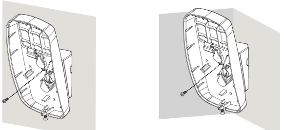 * Monteringsbeslag A indeholder tre skruehuller til overflademontering for fastgørelse af enheden på en flad overflade og fire hjørneskruehuller til fastgørelse i et hjørne.