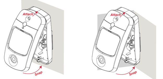 * PIR-kameraet er designet til at blive monteret enten på en flad overflade eller i et hjørne ved hjælp af monteringsbeslag A eller B.