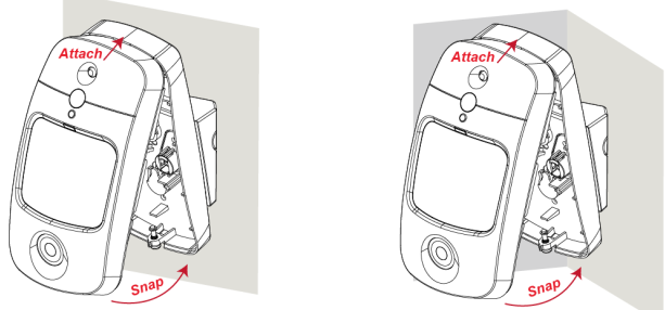 * PIR-kameraet er designet til at blive monteret enten på en flad overflade eller i et hjørne ved hjælp af monteringsbeslaget.