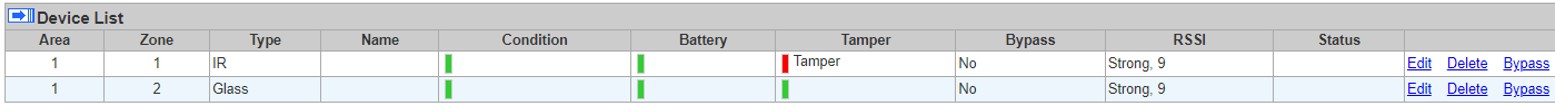 * Όταν ο Πίνακας λάβει το δοκιμαστικό σήμα, θα εκδώσει έναν ήχο και θα εμφανίσει τις πληροφορίες του ενσύρματου PIR & Ανιχνευτή Θραύσης Γυαλιού ανάλογα στην κορυφή της λίστας συσκευών.