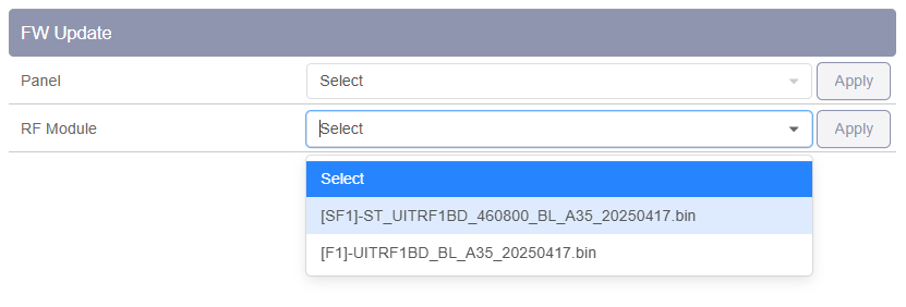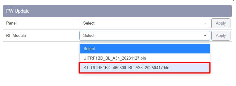 En la página de actualización de FW, seleccione el correcto.