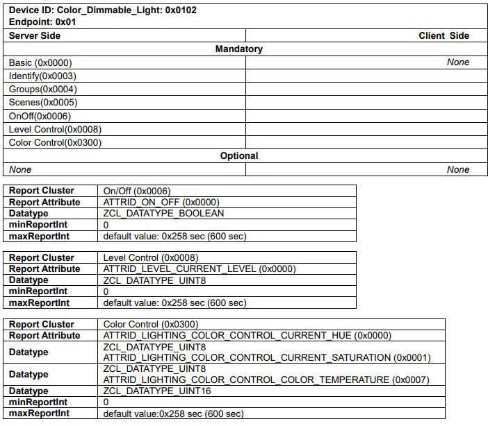 Glödlampans färg och mättnad kan justeras av ZigBee-koordinatorer på distans genom att skicka kommandon.