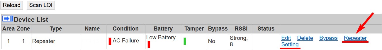 Efter att repeatern är inlärd i kontrollpanelen, fortsätt med att programmera repeaterinställningarna på panelens webbplats.
