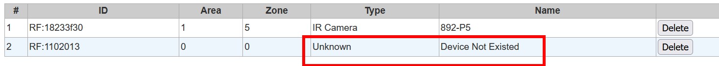 Om en barnnodenhet ännu inte är inlärd i kontrollpanelen, visas “Okänd typ” och “Enhet saknas”. Se till att lära in enheten i kontrollpanelen för att panelen ska känna igen den.