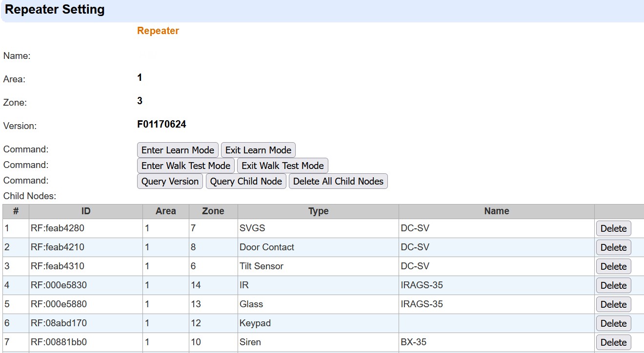 Efter att enheter/repeatrar lärts in i repeatern, klicka “**Fråga barnnod.**” De inlärda enheterna/repeatrarna visas en efter en i listan över barnnoder.
