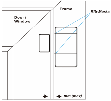* Στοίχισε τον μαγνήτη σύμφωνα με το σημάδι ράβδου στον επαφής πόρτας. Όπου απαιτείται, χρησιμοποιήστε τον αποστάτη μαγνήτη για καλύτερη ευθυγράμμιση του μαγνήτη με τα σημάδια ραβδών.
