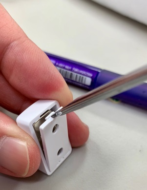 * Στερεώστε τον μαγνήτη στο πιο κινητό αντικείμενο (όπως την πόρτα) χρησιμοποιώντας είτε το διπλής όψης αυτοκόλλητο μαξιλαράκι είτε τις παρεχόμενες βίδες.