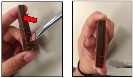 Βήμα 1. Χρησιμοποιήστε ένα κατσαβίδι με επίπεδη μύτη για να τοποθετηθεί στην οπή ανοίγματος του καλύμματος στη μία πλευρά όπως (**Εικόνα1**).