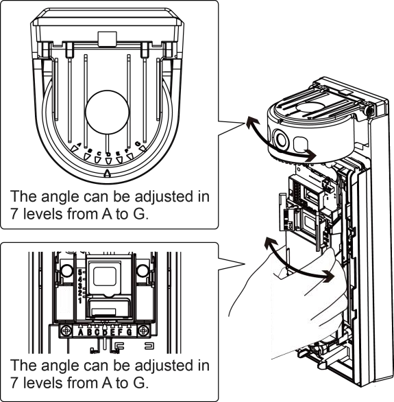 * The angles of both the camera module and the IR sensor can be adjusted in 7 levels from A to G.