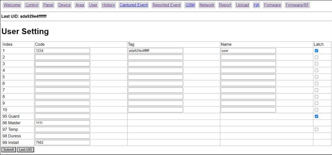 Step 3. Click the Load button on the PIN Code page as below. The corresponding label number will be loaded. Click Submit to save the user code setting.