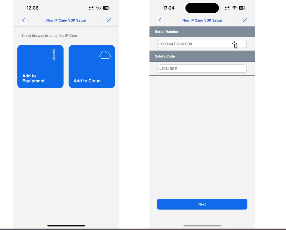 * Add to the cloud: The camera will be installed using the cloud. The user will see the live video only from the user's app account.