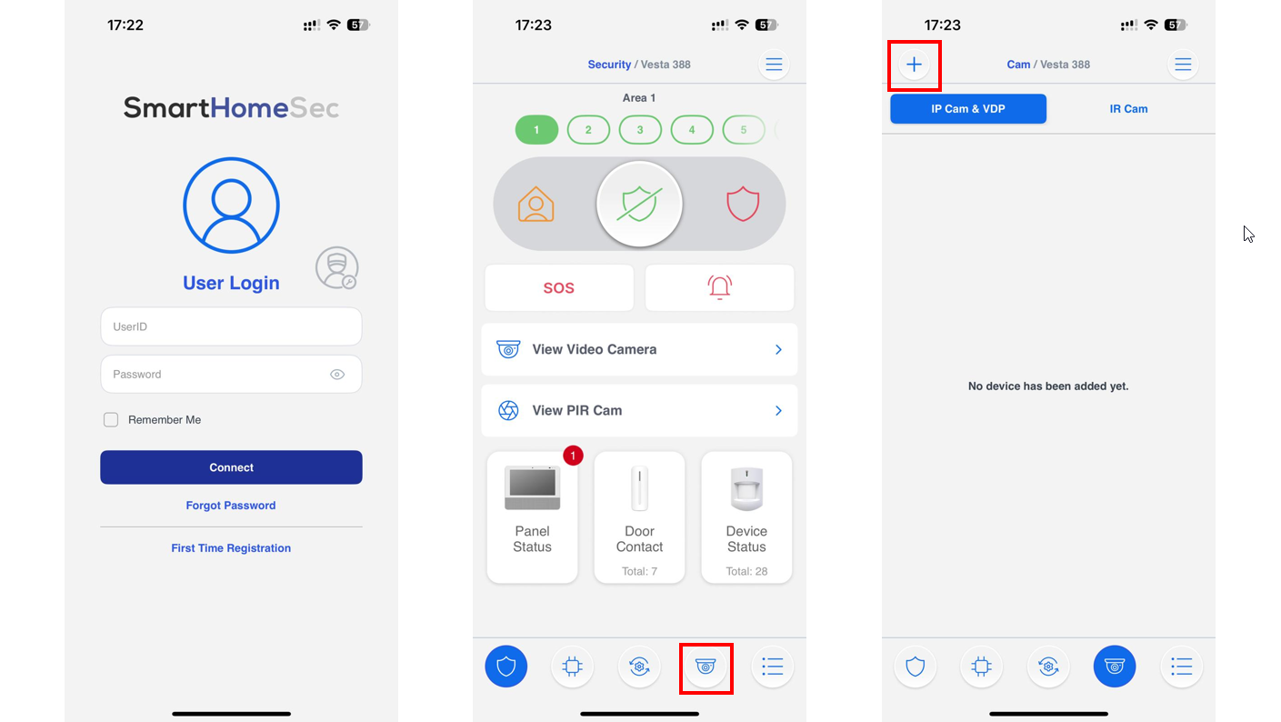 Use the SmartHomeSec app to initialise the camera and **add** it to the system