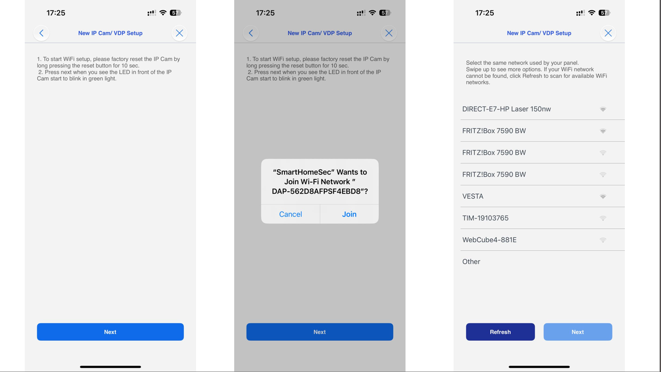 The camera and the panel must be on the same network, please check before proceeding&#x20;